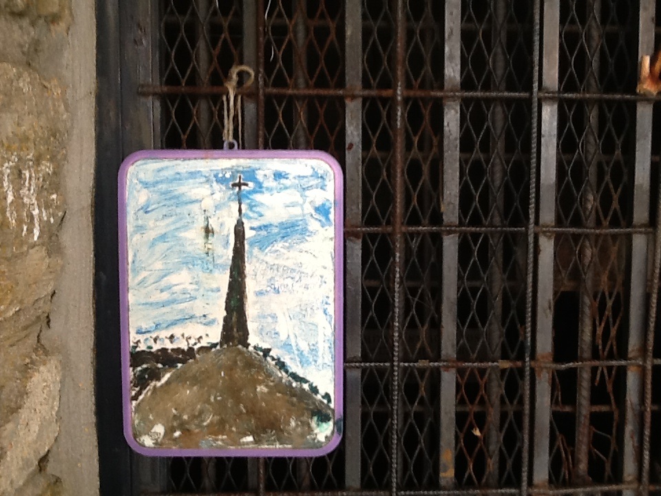 I stopped for coffee in the town of Gonzar. Taking out the guidebook, I see that I have slightly more than 5kms to go. When the terrain is flat, I can do 4-5kms in an hour. Not today as the terrain is rough and all concentration is needed to avoid slipping. Slow and steady I go!