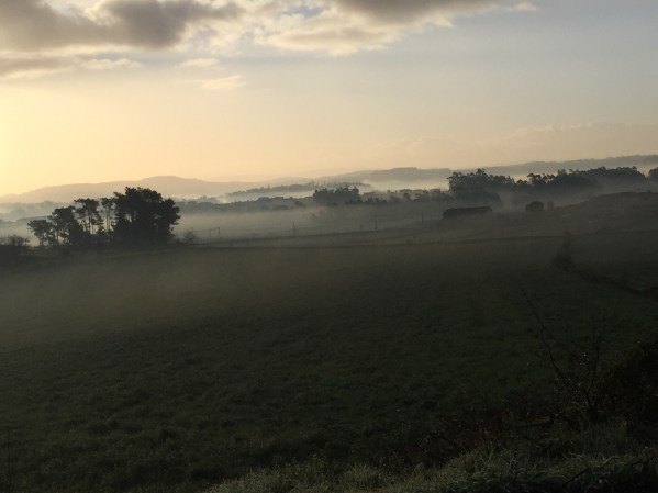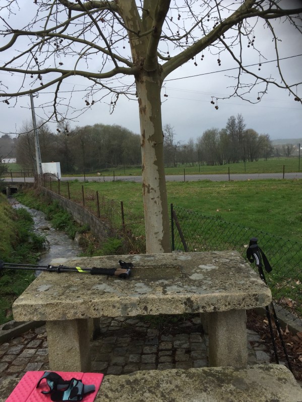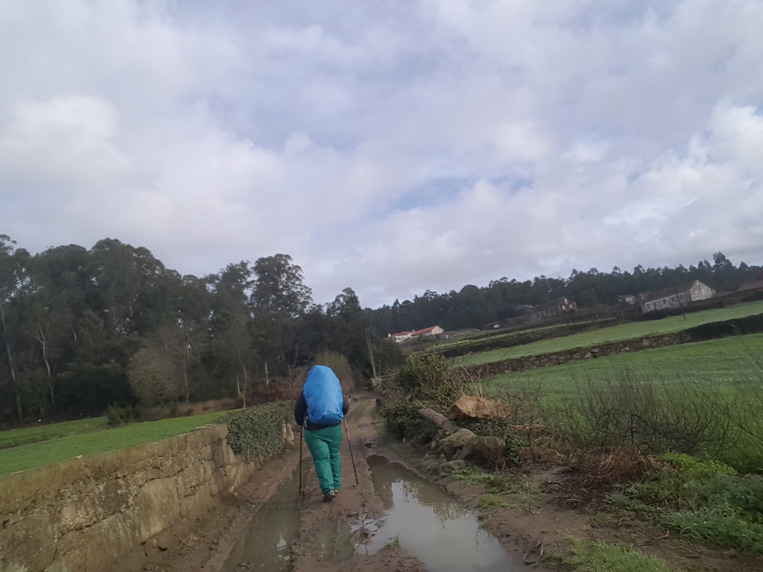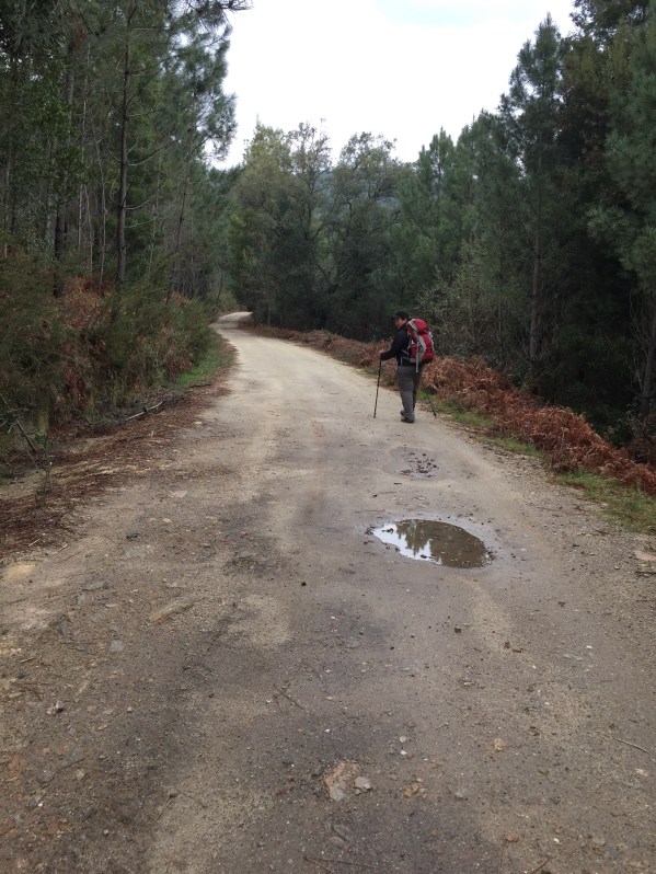 The weather for walking this day was not much different from the others past. Rain and no rain so on so forth. We put on our ponchos and then took it off when we felt we did not need it. Then later we would put them on when the drizzle started again. That was our only real work for the day, “poncho on poncho off then poncho on poncho off”. Reminds me of the Karate Kid “wax on wax off”. LOL.