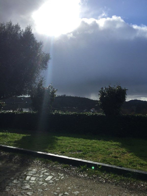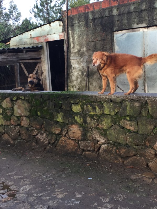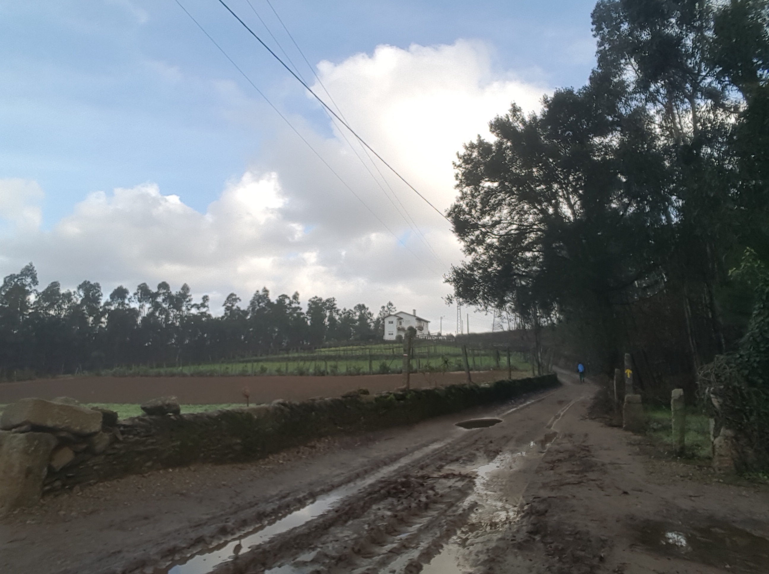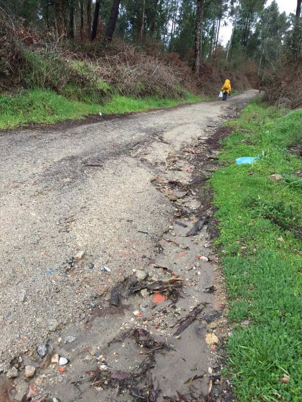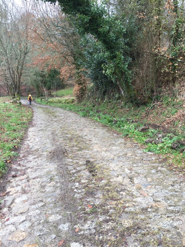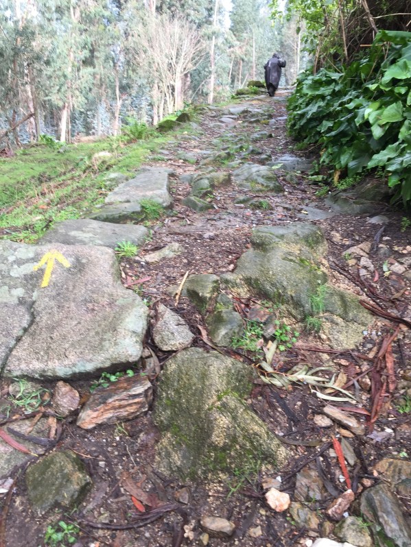 We encountered flooded out Camino roads. The flooding is due to a storm that had just passed through Galicia. I admit we did not know how to traverse the wet road due to thigh high deep water covering our Camino Path on the roads that were next to engorged river and streams.