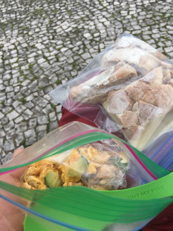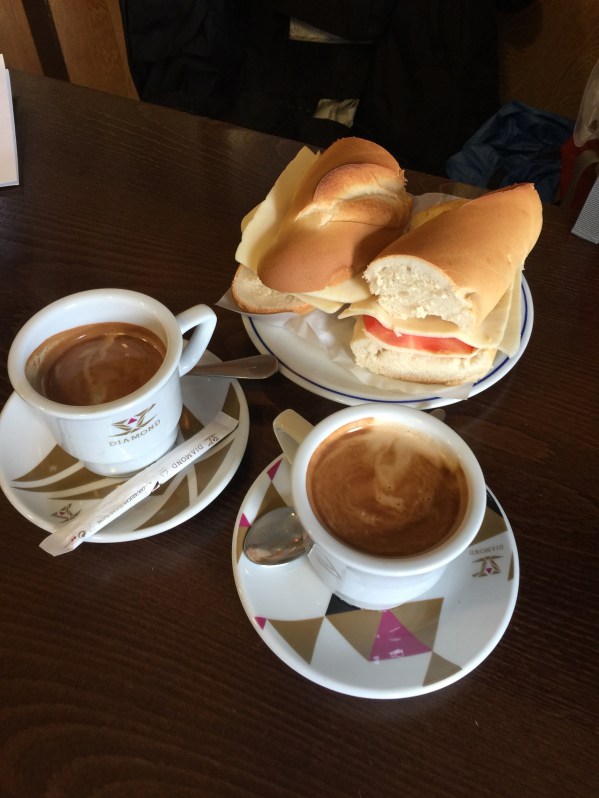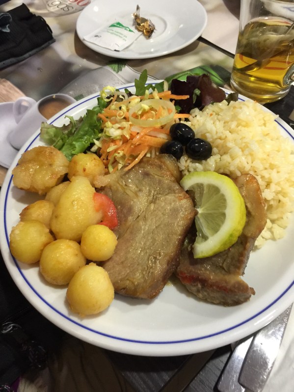 We made it safe and sound. We celebrated our adventures with 2 Kas Limons, a Large Vegetal Bocadillo and tasted part of a shared potato tortilla with our pilgrim angels.