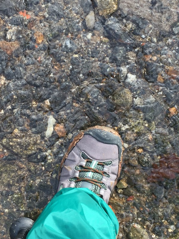 The second flooded road was so deep and there was no bridge to help us. We did have Karen’s Camino Angel in the form of three other pilgrims who had just crossed. They told us what to do. We literally had to take off our boots, gather them onto our arms, roll up our pants, put on our sandals and wade through the high water.